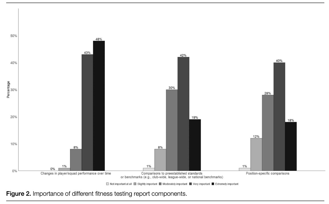 One of the most consistent findings from the study is the importance practitioners place on tracking changes in performance over time, with over 90% prioritising this approach ahead of benchmarking players against normative or positional standards